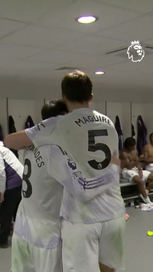 賽后馬奎爾接受完采訪回到更衣室,曼聯(lián)全隊熱烈歡迎了這位進(jìn)球功臣,為他送上鼓掌和拍頭祝賀,隊長B費更是搞怪慶祝。