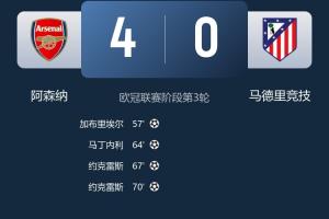 體育資訊10月22日訊 馬競本輪0-4遭阿森納橫掃,西蒙尼在第63分鐘做了一次連換3人的調整,巴埃納、加拉格爾、魯杰里上場,換下吉梅內斯、岡薩雷斯和科克。