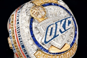 雷霆冠軍戒指:14K白金與黃金打造 鉆石鑲嵌球員號碼&內嵌副戒