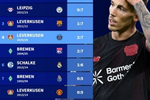 體育資訊10月22日訊 在本輪歐冠,勒沃庫森2-7慘敗給巴黎。德轉也盤點了德甲球隊在歐冠歷史最大比分失利榜單,具體如下: