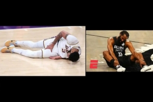 2018年,杜蘭特與哈登決戰時,目睹保羅受傷倒下,火箭倒在傷病之前;一年后,杜蘭特自己受傷,沒能完成三連冠。2021年,三巨頭會集,且都在巔峰狀態,然而哈登和歐文陸續受傷,杜蘭特幾乎要憑一己之力將網隊推過雄鹿了,然而毫厘之差。