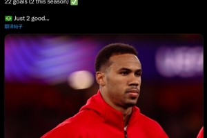 阿森納官推也統計了后者的數據:“222次出場!22球(本賽季2球)!‘二’真秀!”