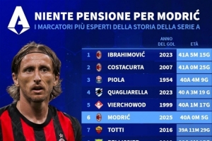 體育資訊9月15日訊 意甲第3輪比賽,莫德里奇破門,幫助米蘭主場1-0擊敗博洛尼亞。德國轉會市場列出了意甲年齡最大進球者排名,伊布居首,莫德里奇排名第6位。