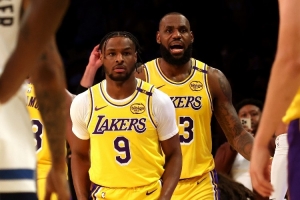 體育資訊10月23日訊 去年的今天,NBA揭幕戰湖人110-103戰勝森林狼,詹姆斯父子實現同臺。