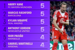 體育資訊10月23日訊 本賽季歐冠聯賽階段已戰罷3輪,Squawka統計了到目前為止的參與進球榜,拜仁前鋒凱恩、巴薩攻擊手拉什福德、皇馬的姆巴佩以及紐卡邊鋒安東尼-戈登均參與5球。