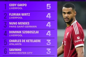 體育資訊10月23日訊 本賽季歐冠聯賽階段已戰罷3輪,Squawka統計了到目前為止創造絕佳機會榜單,加克波5次第一,維爾茨等3人4次分列二至四位。
