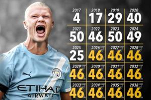哈蘭德現年25歲,到2040年他就將年滿40歲,不過2025年還有半年時間,哈蘭德在今年還能多多斬獲進球。目前40歲的C羅職業生涯進球數為943球。
