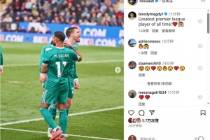 薩拉赫沒有為照片進(jìn)行任何配文,但不到半小時(shí)已獲得5.7萬次點(diǎn)贊,有球迷也在評(píng)論區(qū)盛贊他為英超歷史最佳。