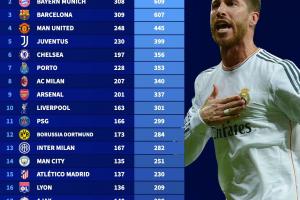 體育資訊09月16日訊 明晨新賽季歐冠打響,德轉列出歐冠(自1992/93賽季開始)總積分排行,皇馬661分第一,拜仁、巴薩二三,曼聯第四。