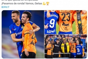 “祝巴爾德莫羅本賽季剩余比賽好運。我們晉級了!加油,赫塔費!”