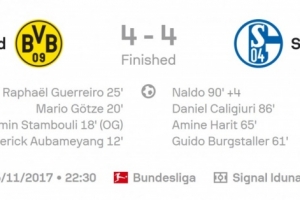 無獨有偶,多特曾在2017年11月的德甲第13輪魯爾德比上演“驚世名局”!再4-0領先的情況下,下半場遭沙爾克04連扳4球,最終同樣4-4戰平!