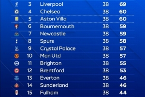 體育資訊10月31日訊 Opta數據給出了最新一期的2025/26賽季英超聯賽最終排名預測,阿森納奪冠。