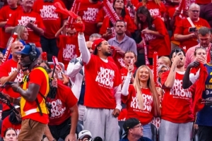 體育資訊9月17日訊 步行者官方社媒曬出了哈利伯頓和未婚妻在現場觀看印第安納狂熱隊對陣亞特蘭大夢想的季后賽首輪G2比賽。