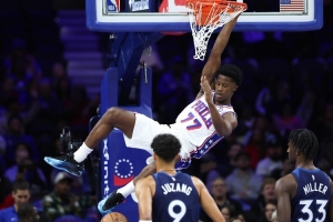 上賽季每個(gè)人都受了傷,首先是恩比德,他因?yàn)榉磸?fù)的膝傷缺席了最后兩個(gè)月,并在四月份接受了關(guān)節(jié)鏡手術(shù),整個(gè)賽季只打了19場(chǎng)比賽。整個(gè)賽季,傷病潮也席卷了保羅-喬治、泰瑞斯-馬克西和賈里德-麥凱恩。球隊(duì)總裁在上賽季的收官戰(zhàn)——那是第58場(chǎng)失利——之后表示,他和球隊(duì)辜負(fù)了費(fèi)城的球迷。