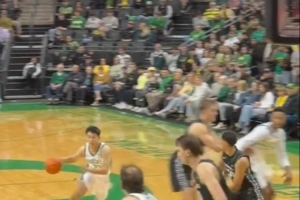 此役,中國球員林葳代表俄勒岡大學首發迎來首秀,比賽當中擊地妙傳中鋒Nate輕松吃餅,林葳得到NCAA生涯首次助攻。