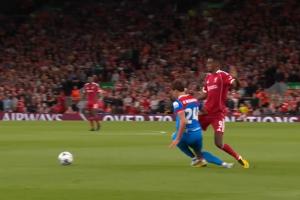 體育資訊09月18日訊 歐冠聯賽階段首輪,利物浦主場對陣馬競。31分鐘,伊薩克分球后被勒諾爾芒踩到,痛苦倒地,緩了一會后伊薩克繼續比賽。