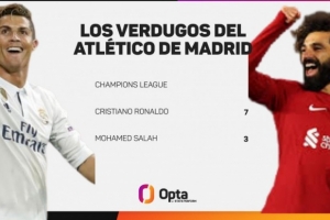 在歐冠賽場(chǎng)上,薩拉赫7次面對(duì)馬競(jìng)打進(jìn)3球。在這項(xiàng)賽事中,薩拉赫面對(duì)床單軍團(tuán)的進(jìn)球數(shù)量?jī)H次于C羅(12場(chǎng)7球)。