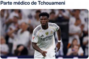 根據皇家馬德里俱樂部醫療服務中心今日對我隊球員瓊阿梅尼的檢查結果,其被診斷為左腿半腱肌損傷。傷情進展有待進一步觀察。