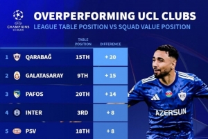 體育資訊11月6日訊 德國轉會市場根據球隊目前歐冠排名與陣容身價排名的差異,列出本賽季歐冠表現超出預期球隊榜單,卡拉巴赫居首。