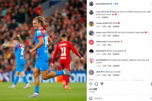 略倫特也在賽后通過社媒曬出自己的比賽照,并配文:“我們在安菲爾德已經傾盡全力,仍然有很多需要改進之處,我們比以往任何時候都更加團結。”