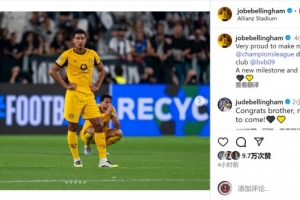 此役喬布-貝林厄姆替補出場,上演歐冠首秀,他在社交媒體上曬出比賽照片,并寫道:“很自豪在多特上演歐冠首秀,一個新的里程碑,也是學習更多的開始。”