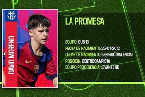 大衛(wèi)-莫雷諾是巴薩青訓(xùn)營中最具潛力的球員之一。上賽季,他成為了巴薩所有11人制球隊(duì)中最耀眼和最令人矚目的球員。這名左腳中場將在明年1月25日年滿14歲,2023-24賽季從萊萬特加盟后,他已經(jīng)在巴薩青訓(xùn)營度過了兩個(gè)輝煌的賽季。