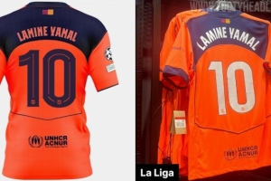 今天凌晨,巴薩在歐冠賽場首次亮相了2025-26賽季第三客場球衣,其字體采用海軍藍(lán)與橙色的搭配。這種設(shè)計(jì)在綠茵場上顯得恰到好處且視覺沖擊力十足。然而根據(jù)西甲聯(lián)賽的裝備規(guī)定,該字體在聯(lián)賽中必須改為白色。