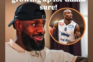 詹姆斯:“在任何級別的籃球比賽中?哦,一個和我們一起長大的孩子,他現在就像是我們的兄弟,他的名字叫德里克-塔弗,我們都成長于城市的同一側,但在我們小時候,他比我年長,他和馬弗里克年紀一樣,所以比我大兩三歲。他10歲時就比所有人都強壯。他是左撇子,肌肉發達,比所有人都強壯,你知道他要怎么打,但你完全無法防住他。”
