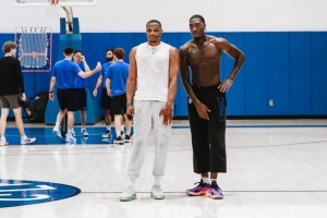 體育資訊9月12日訊 今日威少再次回到母校UCLA訓練,現在效力于UCLA小埃里克-戴利更新IG曬出了與威少的訓練照。