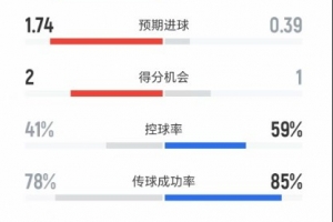 預(yù)期進(jìn)球數(shù):1.74-0.39
