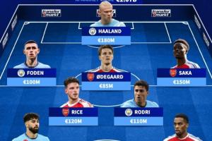 賽前,德轉盤點了對陣雙方的身價最貴11人陣容,這套陣容總身價達到了驚人的10.7億歐,哈蘭德憑借1.8億歐的身價領銜,薩卡1.5億歐元次之。