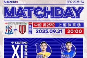 2025華潤飲料中超聯賽第25輪 上海申花 vs 成都蓉城 首發名單 ???
