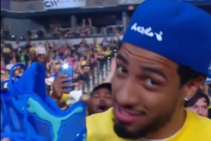 前NBA球員蒂格和現步行者球星哈利伯頓也來到了現場觀戰,哈利伯頓還身穿著WWE巨星約翰-塞納的周邊T恤。