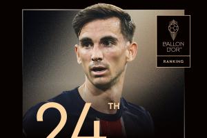 體育資訊9月23日訊 2025年金球獎排名陸續公布,29歲的巴黎圣日耳曼中場法比安-魯伊斯排名第24位,生涯首次入圍。