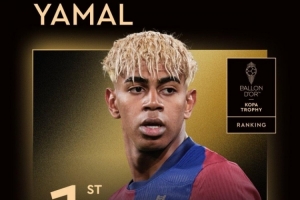 體育資訊9月23日訊 2025年金球獎頒獎典禮今日進行,18歲的亞馬爾獲得科帕獎(旨在表彰年度最佳U21球員),連續兩年獲得該獎項。