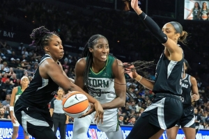 作為聯盟中的傳統強隊,拉斯維加斯王牌在首輪遭遇了西雅圖風暴的頑強抵抗。系列賽首戰,王牌展現出強大的統治力,以102-77的懸殊比分大勝風暴,阿賈-威爾遜全場砍下29分8籃板,杰基-楊也有18分7助攻入賬,王牌憑借出色的進攻效率和強硬的防守,早早確立了領先優勢。?