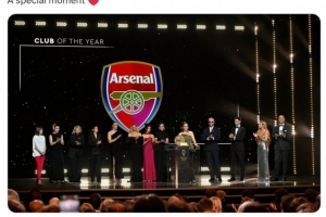2025年金球獎頒獎典禮在北京時間今天凌晨進行,阿森納女足獲得2025年最佳女足俱樂部獎項。