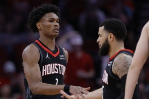 在湯普森身后,火箭有霍勒迪這張安全網,他是一個略高于輪換水平的替補,能命中空位投籃并在防守端拼盡全力。但作為一名組織者,他的能力有限,考慮到這支球隊只有少數幾個人會運球(我只有一點點夸張),這個問題就被放大了。