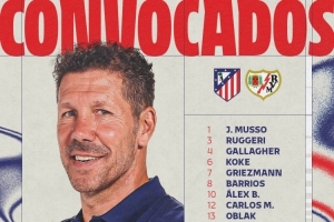 體育資訊9月24日訊 北京時間明天凌晨,馬競將在西甲第6輪比賽中主場對陣巴列卡諾,馬競公布了此役的球員名單。巴埃納復出,索爾洛特停賽缺席,吉梅內斯、阿爾馬達、卡爾多索因傷繼續缺席。