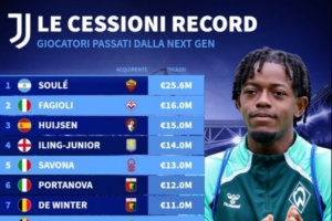 體育資訊9月12日訊 德轉(zhuǎn)統(tǒng)計(jì)了尤文新生代球員賣人榜,蘇萊2560萬(wàn)歐加盟羅馬居首,法喬利、赫伊森分居二三位。