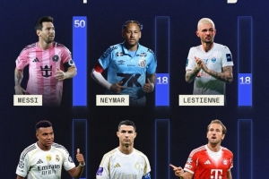 體育資訊9月25日訊 SofaScore統計了他們數據庫中獲得10分評價的次數排名,梅西50次遙遙領先。