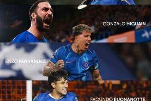 賽后,切爾西官方社媒祝賀成為第5個為藍軍進球的阿根廷球員。